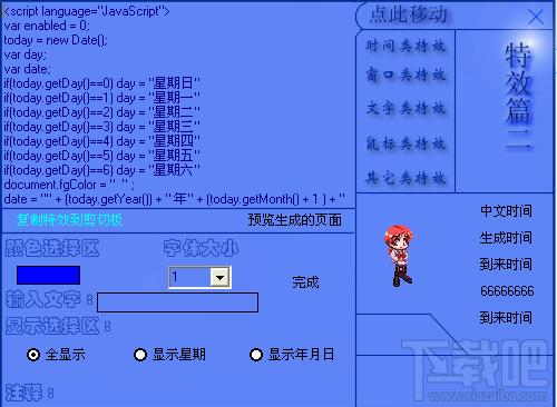 先在总的特效区选择(如:时间类特效),然后的次特效区选择(如:到来时间)后进行各项设置,如果没有设置会使用默认值。